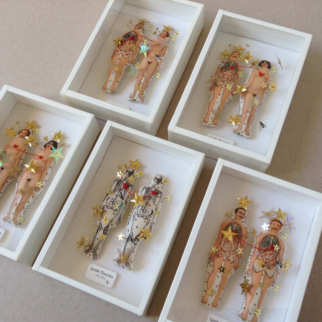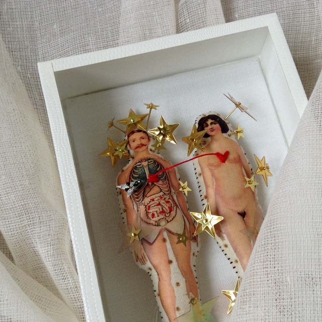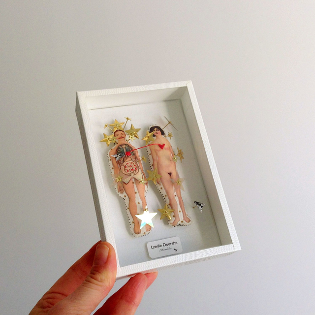 Matériaux : carton / verre / textile / paillettes / épingles / fils...