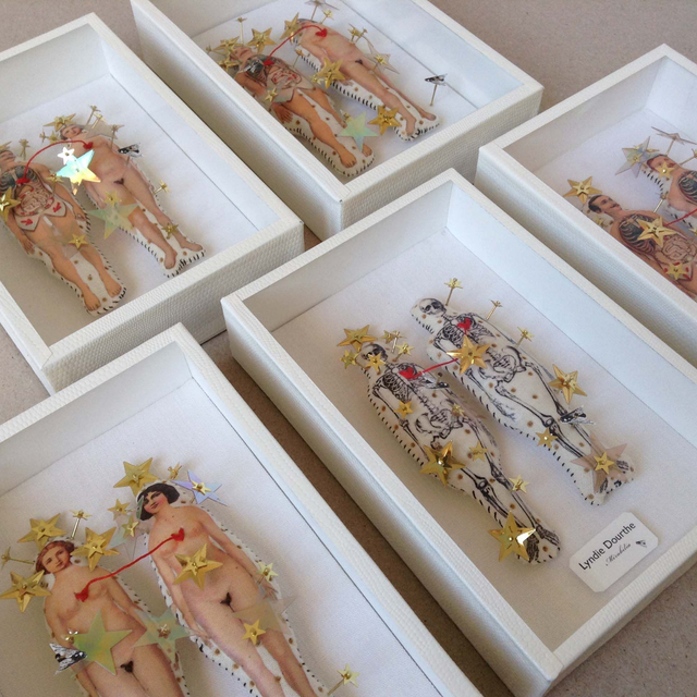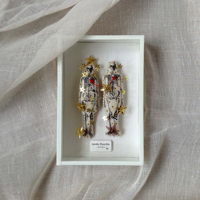 Matériaux : carton / verre / textile / paillettes / épingles / fils...